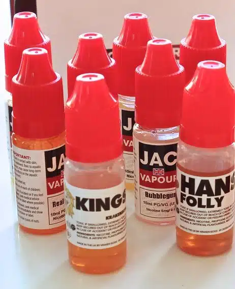 La composition se compose de quatre éléments, deux éléments de base : le propylène glycol (PG) et Glycérine (VG), additifs alimentaires utilisés dans divers domaines, y compris dans l’industrie cosmétique. Les deux éléments restants sont facultatifs, vous pouvez trouver l’arôme, ce qui, bien sûr, donne au liquide un goût extraordinaire , et la nicotine, la molécule qui fournit aux fumeurs un bien-être .
